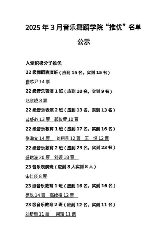 经本人申请、各班团支部推优、公司团总支审核、公司党总支研究决定,拟确定以下同学为2025年3月“推优”对象,现将名单予以公示。